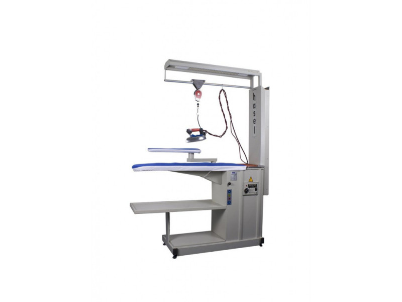 Narrow Ironing Table With Vacuum-Blowing-Chimney-Balancer –Lamp and ArmUsually used for finishing in garment industries and dry cleaning sho...