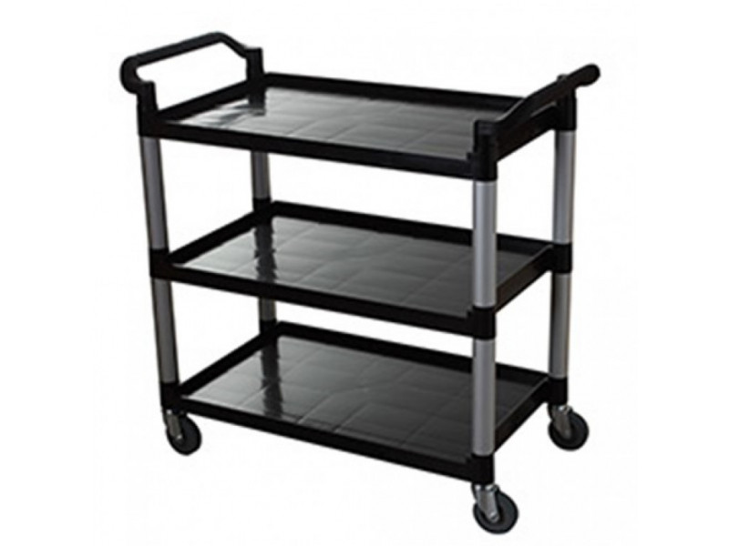 Plastic Service Trolley 3 Tier BLACKMaterial : PP with alumina pillarThickness of the panel 3 mm/6mmMax. Loading : 40 kg/per shelf,2TPR swivel castors...